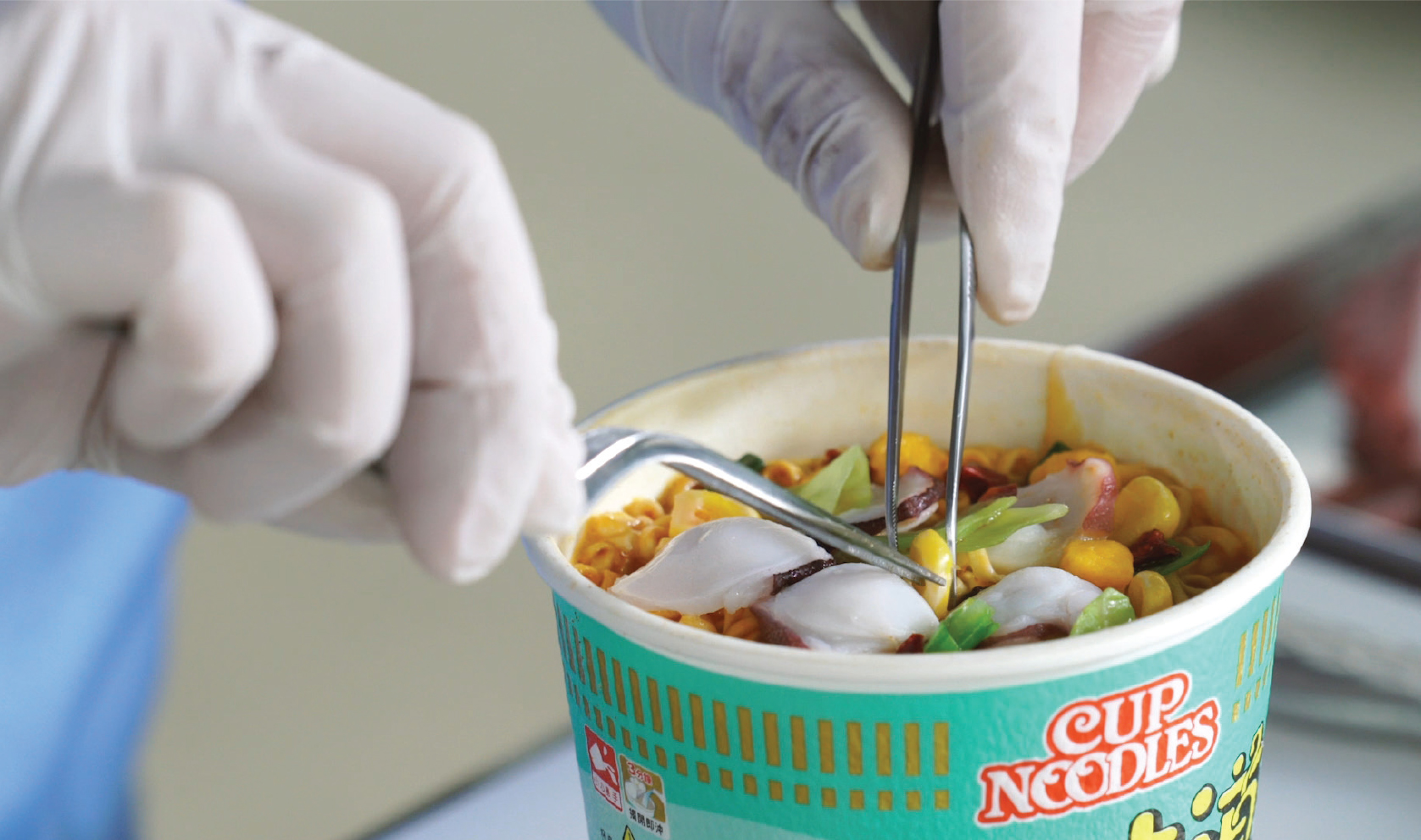 Minja Gu has presented diverse media including photography, video, installation, and drawing based on performances that depart from our familiar everyday life and the questions arising from it. In her recent work, she explores food as a medium that reveals specific contexts, histories, meanings, and relationships with humans. Gu's The Authentic Taste series (2014-) visually and perfectly realizes the example images shown on the packaging of processed foods such as cup noodles, instant rice, tofu, and retort foods sold in the market, while also making them available for tasting. The artist faithfully reproduces the seemingly impossible food images from photographs. This process, which requires extensive technical training, research, and effort to perfectly express the images on food packaging, raises questions about authenticity. The Authentic Quality: Spicy Seafood Noodle was presented at KimKim Gallery's Take ( ) at Face Value in Australia in 2019 and demonstrated in Hong Kong, and is being introduced in Korea for the first time.