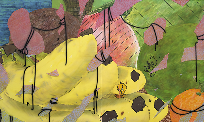 디지털 세상에서 만들어지고 휘발되는 이미지들을 캔버스에 박제함으로써 현대인들에게 다양한 자극과 감각을 일깨우고 싶은 작가는 그래픽 툴로 작업한 이미지를 평면에 옮기고, 그림을 그리고, 다양한 미디엄으로 표면에 요철을 만드는 과정을 통해 작품을 완성한다. 화면 속에는 일상에서 익숙하게 마주하는 과일들이 대상으로 등장한다. 그러나 우리가 일상에서 늘 마주하던 과일에서 느껴지는 감각들과는 다른 것들이 느껴진다. 확대되거나 잘려진 대상들의 이미지 조각들은 우리에게 새로운 감각을 끌어내도록 요구하는 것 같다.
