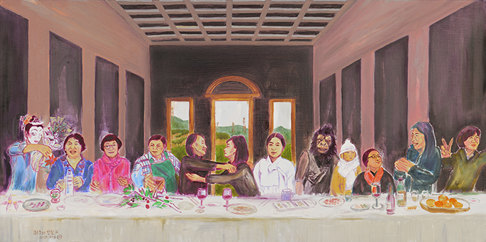 나혜석을 비롯해 시인 김혜순, 서지현 검사 등 작가의 삶에 영향을 준 인물들을 한자리에 모아 그림으로 그려 낸 ‘최초의 만찬(2019)’ 시리즈들도 같은 맥락의 작품이다.