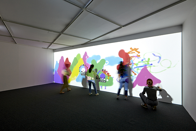 디지털기술을 통해 새로움을 경험하게 하는 작가그룹 콘크리에이트랩은 전시장에 무한한 가능성을 가진 하얀 도화지를 펼쳤다. 작가들이 만들어낸 공간으로 들어서면 누구나 그림을 그릴 수 있다. 붓을 들고 새하얀 화면 위에 마음껏 선을 긋고 색을 칠해보자. 그림이 그려지는 과정의 행위와 수 없이 만들어지는 겹(layer)을 경험할 수 있을 것이다. 아날로그 매체인 그림을 디지털매체로 경험하게 하는 그들의 작업은 2차원의 그림이 그려지는 행위와 과정을 경험하게 하는 귀중한 시간을 제공한다.